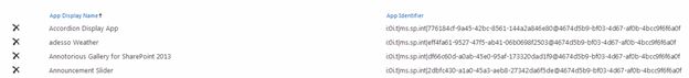 Site Collection App PermissionsIt contains the App Names or the site content's Display Name and their interface identifier regarding their permission level.