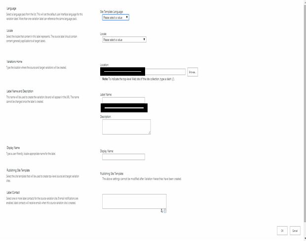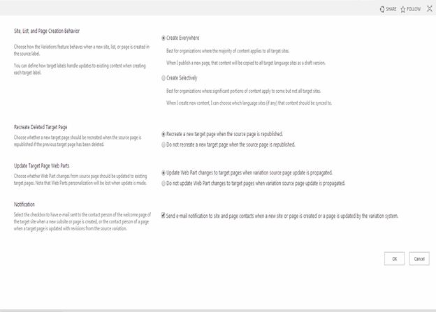Then we have the Variation settings. It i a very important feature, it is like how the labels will perform when you create a new site, list or a page.