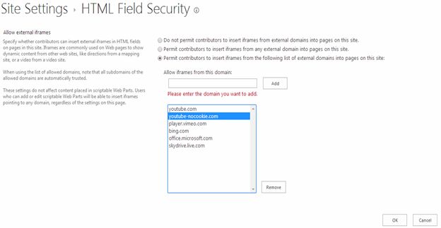 Here we can insert external iframes in HTML fields on pages in the site where you can set permissions on the pages to show dynamic content from other web sites and also it will add iframes from this domain.