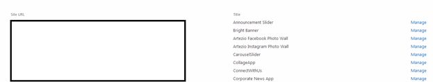 Site HierarchyThe following view contains the Site Hierarchy that displays the Content's URLs, Titles of contents like (List and Document Library) and a link to manage them directly going to the content library and list settings.