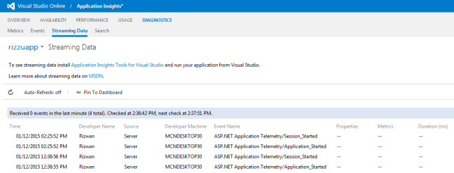 When you go to the Streaming Data then you have the information about how your application works and when users send a request to the server. Here this time the source, devloper name, event name and event durations are available so using this you can get all the information about your application status.