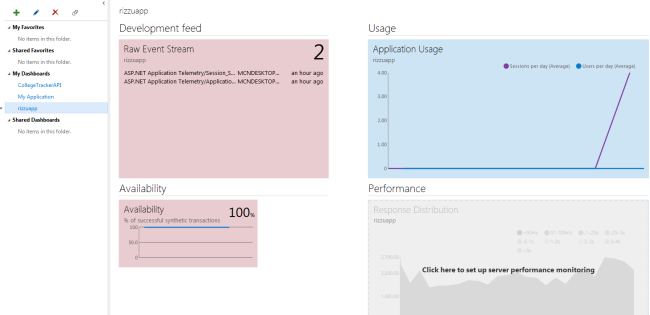 When your application is running on the server and you open the application portal from options then by default in the browser and you go to the Visual Studio online/Application Insights portal then this page has many options for monitoring your entire application.page as in the following: