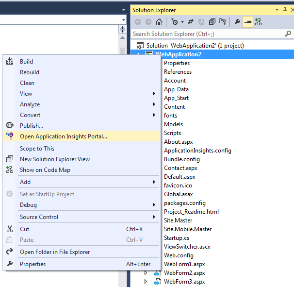 When you launch your application on the server then you can monitor your entire website or web application using Application Insights. Now to use the Application Insights in your project, right-click on your project. You will see an option for opening the Application Insights portal in options.