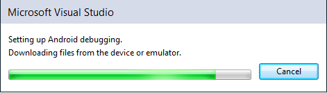 Go to debug, click the debug during this. The solution was built for the emulator so you will see a progress bar like this.