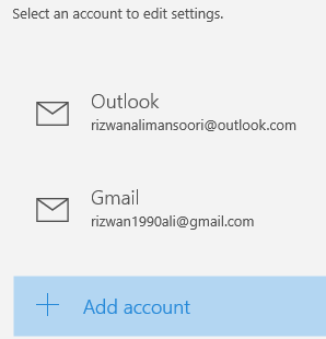 Now when you click on the first option for accounts you will have that account from which you login. Here you also have the option to add another account. Just click on the Add account. When you click on the Add account option you will have a window like this.