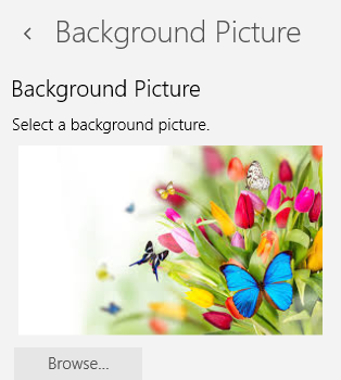 The second option in the settings is to change the background picture. Using this icon we simply change the background image. Just click on this link, browse to your picture and click on the Done button.