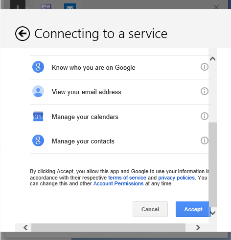 Here you have your desired account for using the mail service. Here I use my Gmail account for adding a new account. After inserting my id and password I got a window like this. In this window click on the Accept button.
