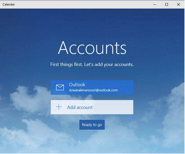 Here I go with my Microsoft account. When I click on the Ready to go button then we get a new window, just as in the following picture.