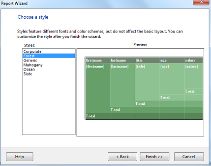 Now click on the Next button. You will see a sample of the report, something like the picture. You also have the template for changing the view of your report.