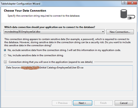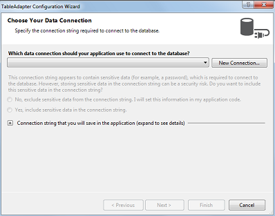 When you click on the Toolbar option then the toolbar will open. Now from the toolbar select the Table Adapter, drag and drop it onto the screen. When you drag and drop it onto the screen you will have a popup like this.