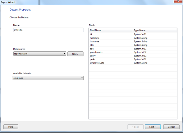 Now simply open the Report Viewer tool and choose the Report Wizard. Using the Report Wizard choose the data source.
