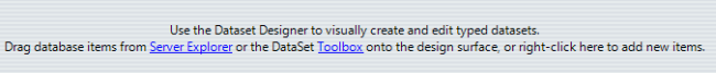 After adding the dataset into your project you will see a window like the following. In this window you have two optiond for configuring the data set, one is the Server Explorer and the other is to use the Table Adapter tool from the toolbar. So here we will use the Table Adapter tool for configuring the dataset.