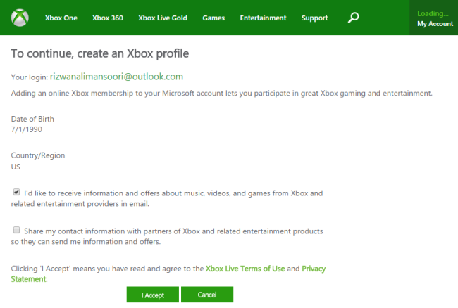 After inserting the right user id and password you must go with the Xbox page. Here you have some conditions, just accept the terms and conditions and click on the OK button. For doing this you have successfully registered on the Xbox site. Now you are a member of the Xbox Community.