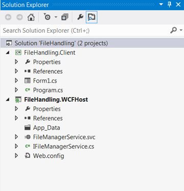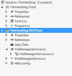 The first step is to create a WCF REST service that will be used for downloading and uploading the file. I prefer to keep all my services in a separate WCF project. This project is then hosted in the IIS.