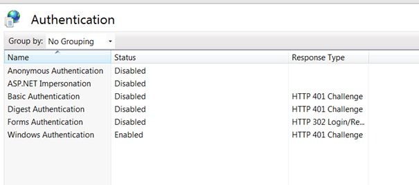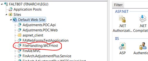 - Ensure that for the FileHandling.WCFHost, only Windows Authentication is enabled.