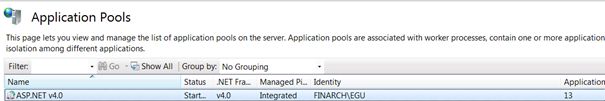 - Ensure that the App Pool associated to the account is of .Net Framework 4.0. Also, the App Pool should be running under the identity of the user that has Read/write rights on any folder of the server. WCF uses this identity for doing all its network operations. In this case I run the App Pool under my account, but it is not mandatory, you can choose a different account having permissions as well.