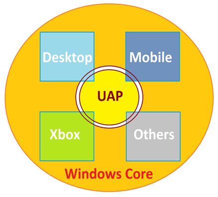Using the preceding SDKs you can code your app like to access a specific external device related to a specific targeted device. Such external device, like a Scanner, Remote Control, Hardware Button and so on. So creating a Universal Windows Platform using the Extension SDKs, you can run the app in the desktop with the desktop related APIs and you can also play the app in Xbox by accessing all the required controls in the device. Similarly you can get and access all the internal hardware control that is present in the Phone. Well the following image can convey to you better about the UWP extension SDKs.