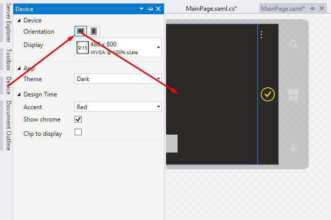 - SupportedOrientations="PortraitOrLandscape" Orientation="Portrait"