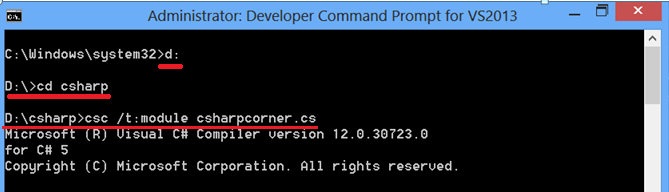 Note: /t for target, it creates csharpcorner.netmodule (in other words a CIL/MSIL code).
