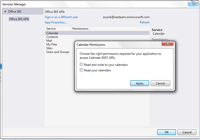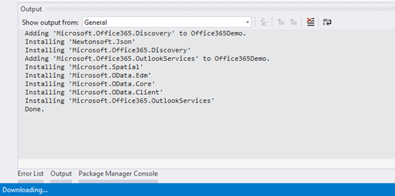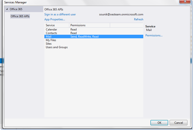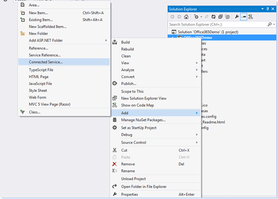 Note: The following is the procedure that gives the brief details of how to add Office 365 to our application. In the future series, I will provide a detailed procedure and we will create a working example. For now assume we have a hello world application that uses an Office 365 service.