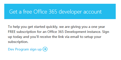 Go to Office 365 Dev Program and sign up for a new Office 365 account.