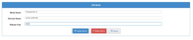 Once I update the movie it will save it to the database and then it will redirect to the Movies link as shown below.
