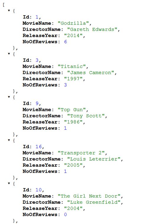 After adding a Review, the position of the newly added movie moves up in the list since behind the scenes the order by clause is working on the total number of reviews. Now, when I click on the Reviews link again, it will show me the review that I added.