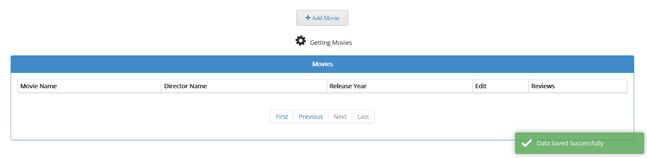 Now, at this instant I can go ahead and submit the movie. Once I click the Submit button, a toast message will appear saying Data Saved Successfully and will it will redirect back to the movies link.