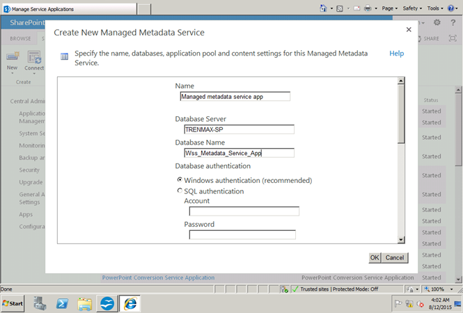 This article explains Managed Metadata Services in SharePoint 2013.Let's see how to configure a managed metadata service application in SharePoint 2013.Open SharePoint Central Administration.Click on Manage service applications.