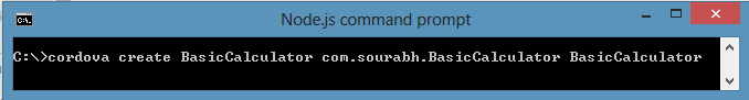 "cordova create BasicCalculator com.sourabh.BasicCalculator BasicCalculator "