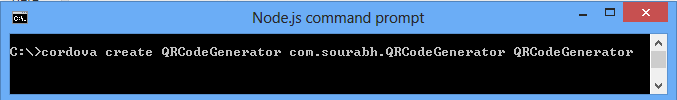 "cordova create QRCodeGenerator com.sourabh.QRCodeGenerator QRCodeGenerator"