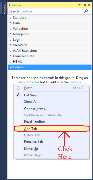 Step 3: Now create a new website and add the downloaded AjaxToolkit into the toolbox as in the following: