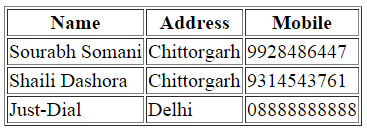 - Table Cells: The cells of the table may be the heading of the table and maybe the data of the table. Using <th> we specify the heading cells and using <td> tag we specify the data cell of the HTML element.