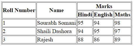 - <th rowspan="2">Roll Number</th>