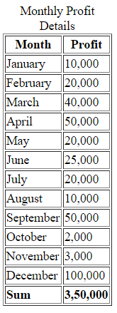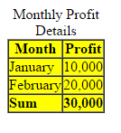 - <caption>Monthly Profit Details</caption>