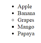 - <li type="square">Mango</li>