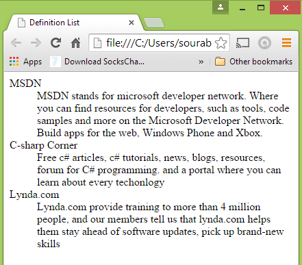 <dt> (Definition Terms) and <dd> (Definition Descriptions).