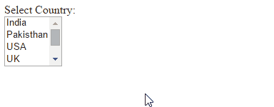 Select Control: The <select> tag is for drawing a drop-down list. Inside the select tag, the <option> tag defines the options inside the drop-down list.