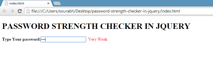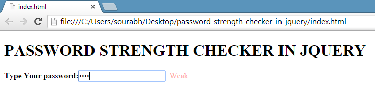 - <h1>PASSWORD STRENGTH CHECKER IN JQUERY</h1>