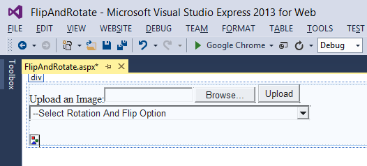 Use the following procedure to create a simple application for flipping and rotating an image using ASP.NET.