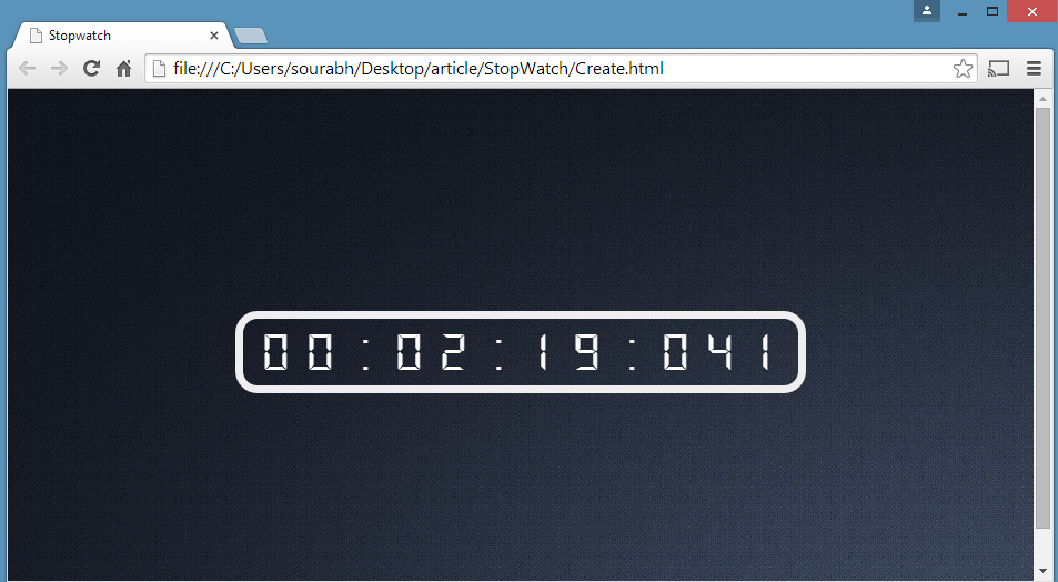 In this article, we'll create a stopwatch using HTML5 and CSS3. We will only focus on CSS3 keyframe animation and there will be the 3 states start, stop and reset. The start will start the stopwatch, stop will stop the stopwatch and reset can reset the stopwatch.