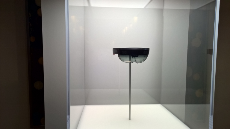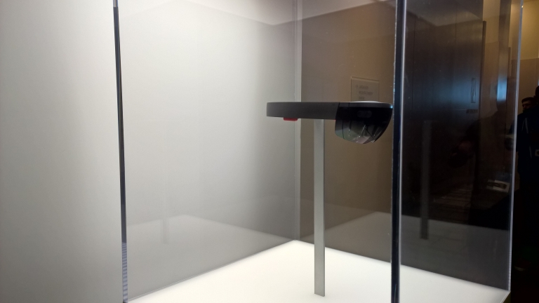 Here you have some photos of a Hololens exposed that they had in the showcase and let us photograph with, selfies included showing that yes, I was there and that this was not just a dream of science fiction, although it seems so!