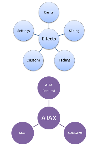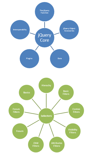 As per jQuery - "Write Less Do More": Day 1 study, we will agree that the main reason for using jQuery is properly documented JavaScript library. Another factor is logical categorization of the API. Let's understand how the jQuery API is organized. It is so robust that it's easy to get hung up on implementation because of the number of solutions for a single problem. We have replicated here how the API is organized for you. Memorize these given API Outline.