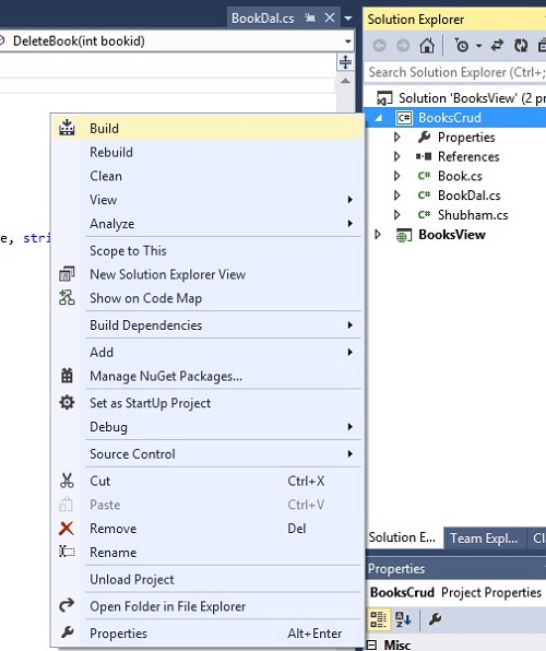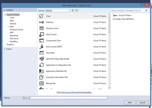 Now prepare the get and set properties in the Book.cs file as in the following: