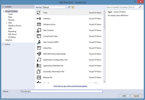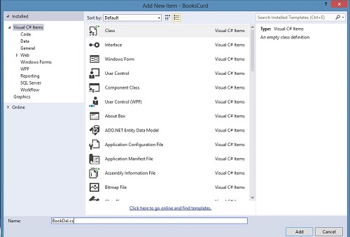 Now add class files to create a Data Access Layer (DAL). We will add the following three class files: