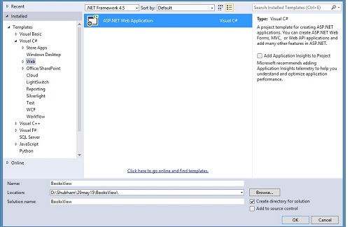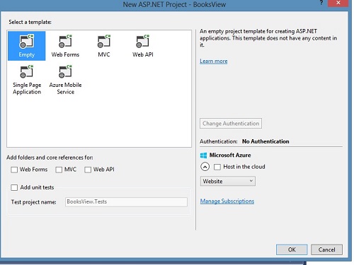 Open Microsoft Visual Studio 2013 and create an Empty Web Application with any suitable name.