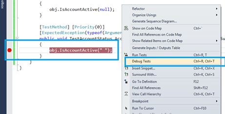 Scenario #2: To verify this behavior add a Test First and we will make use of a Microsoft Test provided attribute [ExpectedException(typeof(ArgumentException))] to verify the exception the caller will be expecting in a real situation.