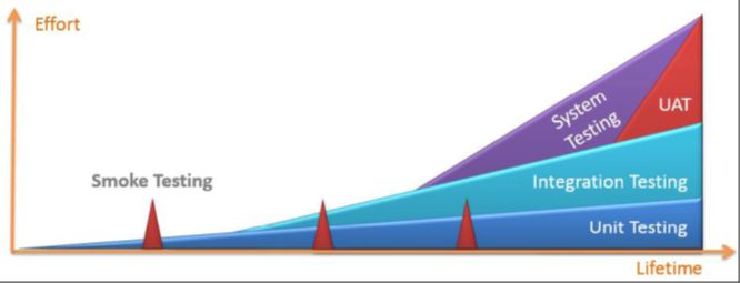 The image below also depicts that over the period of time in a project a Unit Test needs to be continuously written and run for software quality.