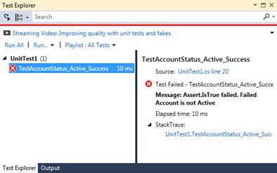 -             Assert.IsTrue(obj.IsAccountActive("1234"),"Failed Account is not Active");