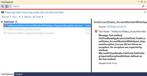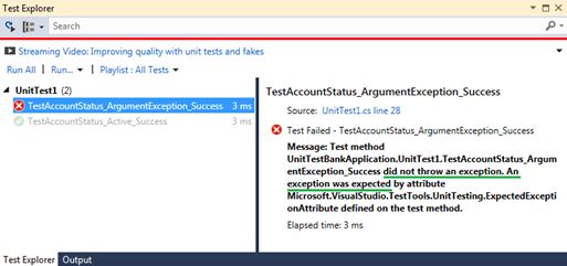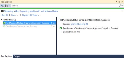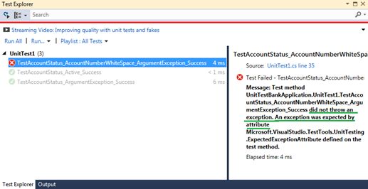 Now let's re-run the test TestAccountStatus_ArgumentException_Success() and observe the results.